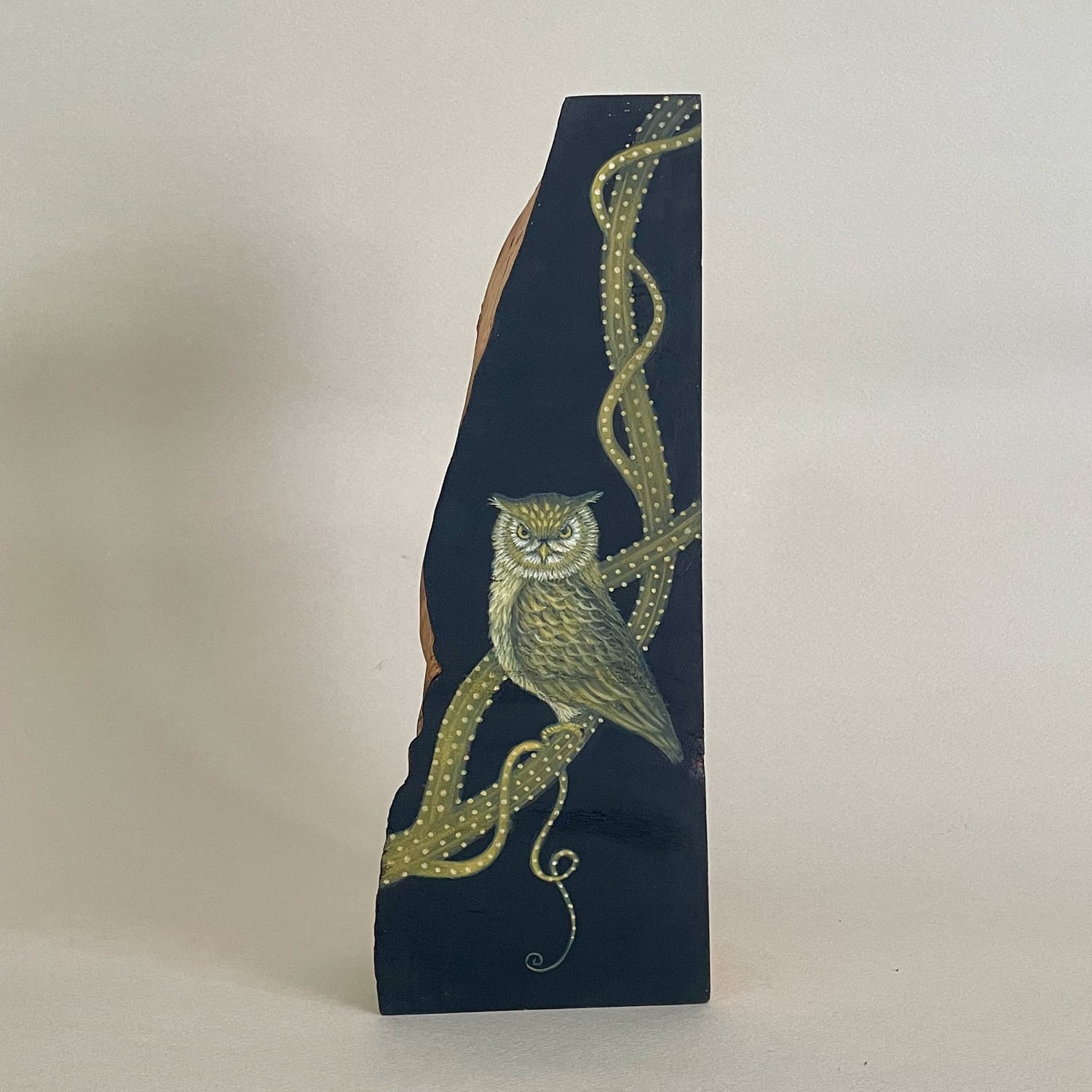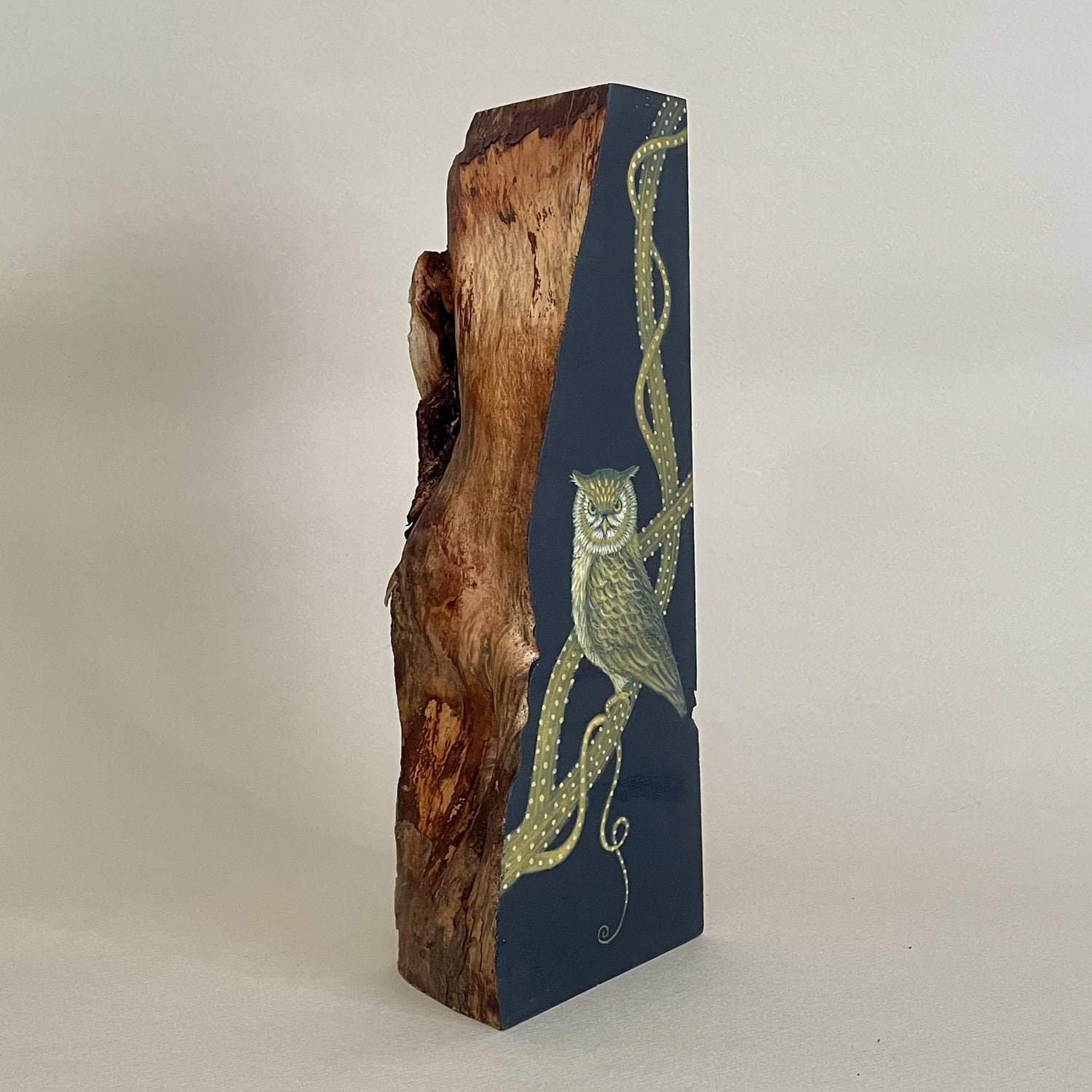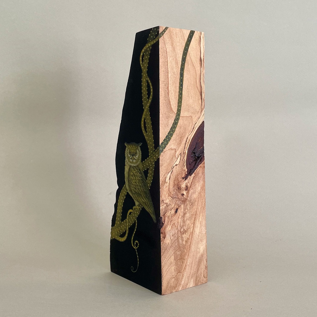 豊かな木の質感と、幻想的な絵画とのコラボレーション