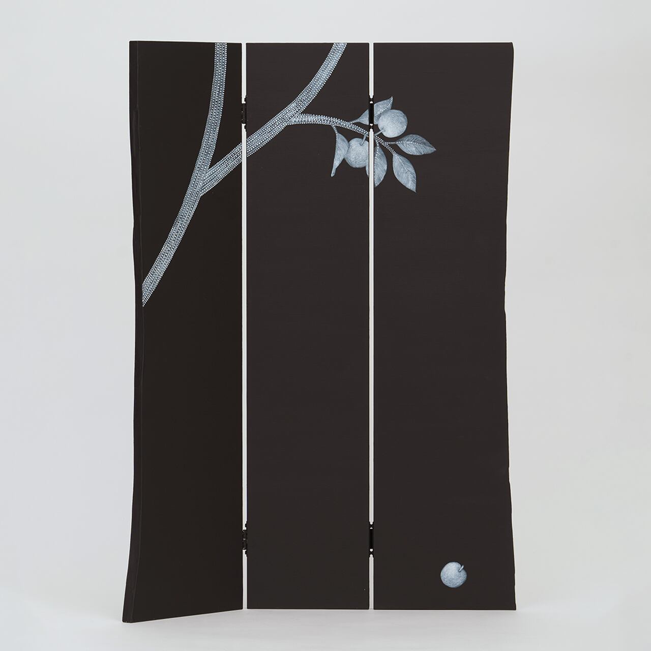 そのような静寂の空間を、無垢材を支持体としてモノクロームで描きました。
