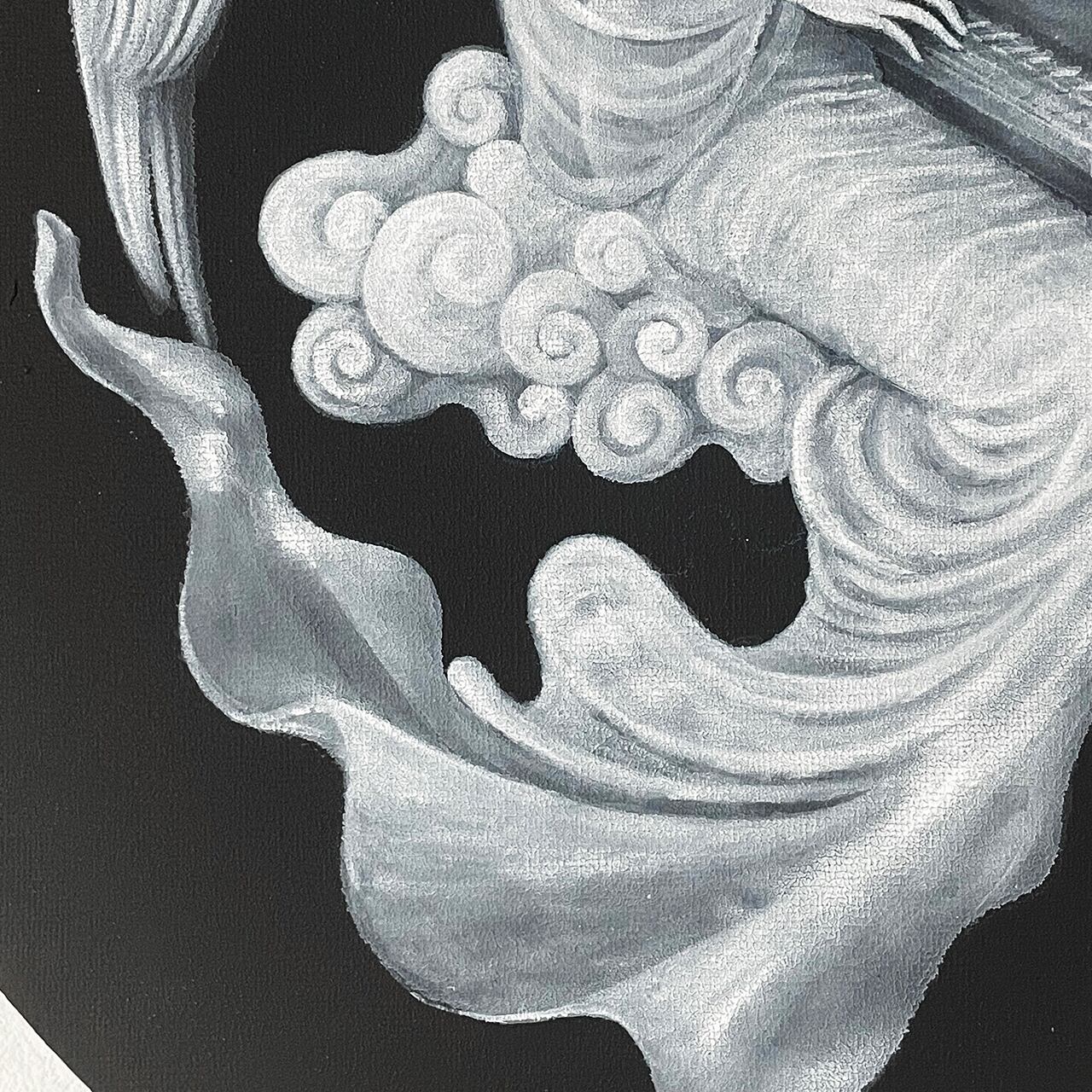 雲に乗る姿は、平等院の雲中供養菩薩像からインスピレーションを受けています。