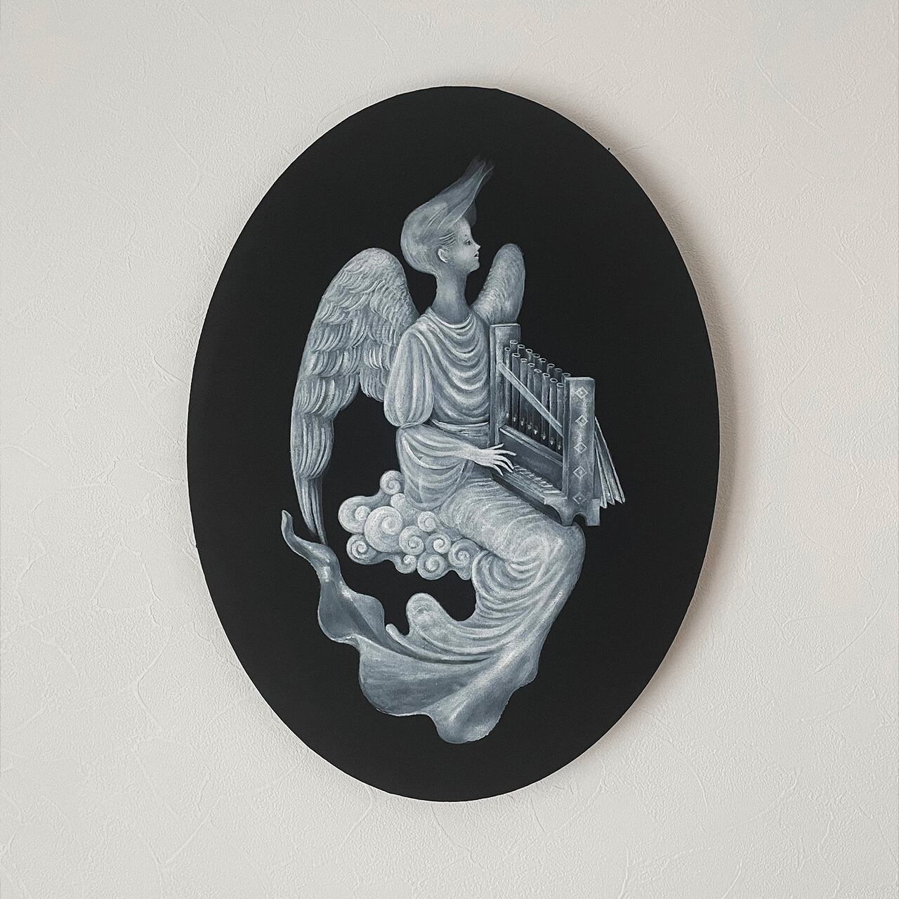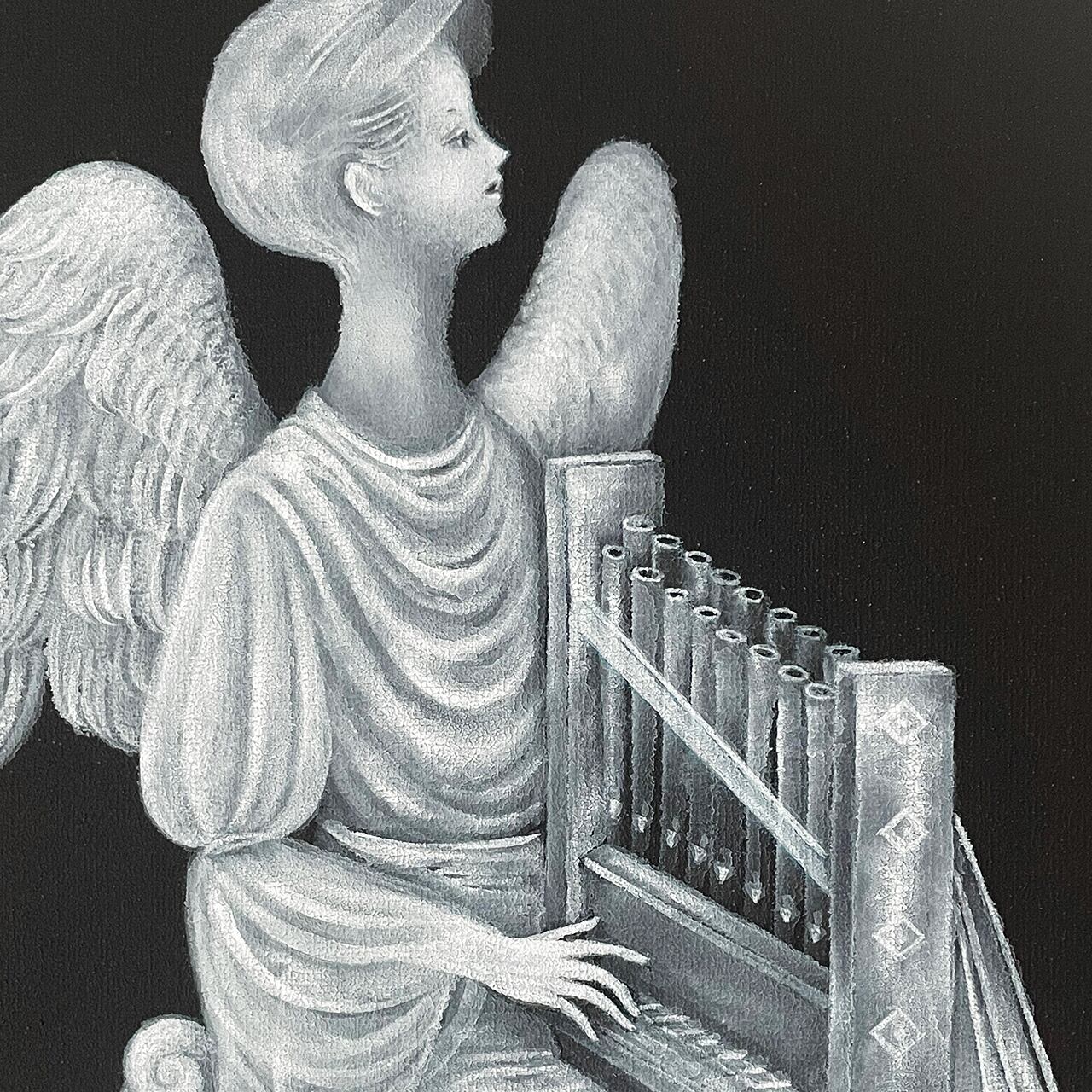 キリスト教では”七大天使が”知られていますので、7人の天使がそれぞれの楽器を演奏する様を描いたシリーズ作品としました。