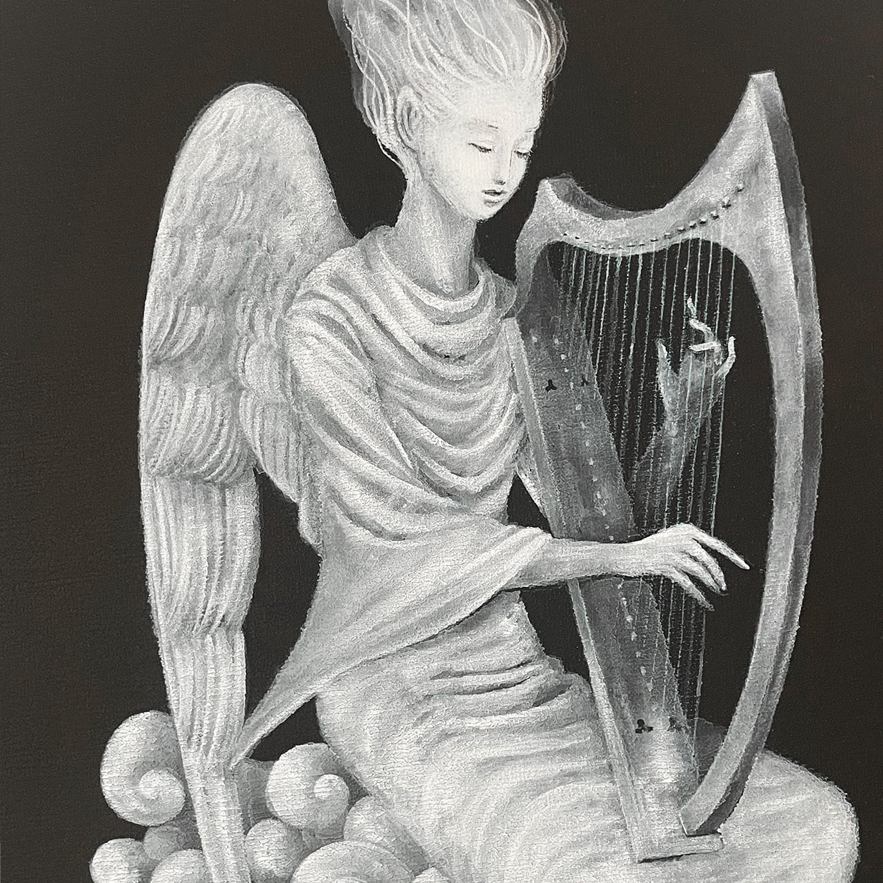 キリスト教では”七大天使が”知られていますので、7人の天使がそれぞれの楽器を演奏する様を描いたシリーズ作品としました。