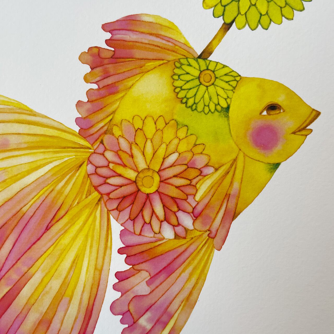 生き生きとした生命力を、カラーインクの鮮やかな色彩と滑らかなグラデーションで表現しています。