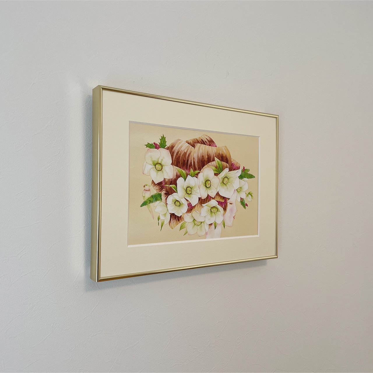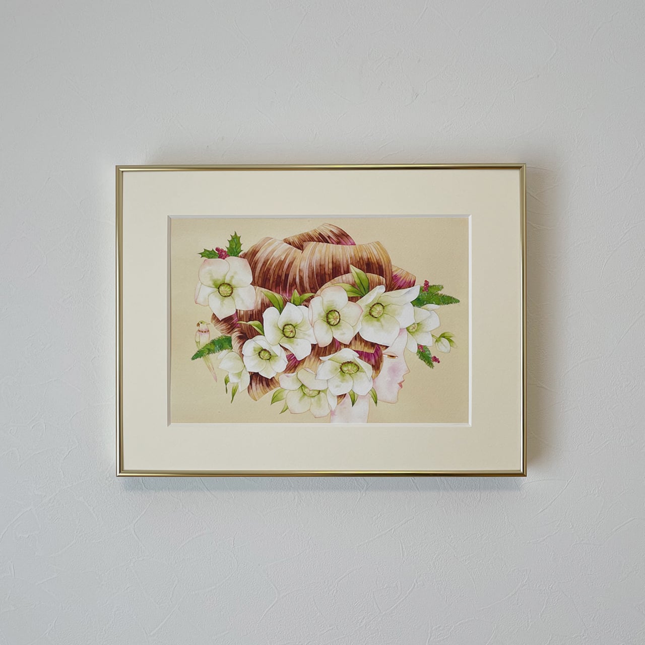 細い金縁の額が、作品を華やかに引き立てます。